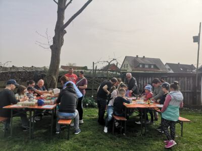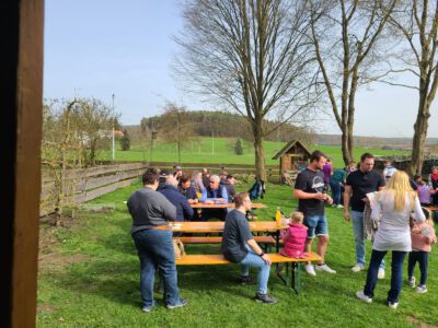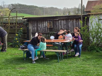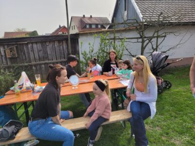 In den Stationen konnten die Kinder Eierfärben, Osterkarten basteln, Sackhüpfen und ein kreatives Kinderschminken durfte natürlich auch nicht fehlen. Im Osterkorb befanden sich bereits Sonnenblumenkerne, die die Kinder zuhause einpflanzen können. Im Herbst wird dann die höchste Sonnenblume gekürt. Bei Kaffee und Kuchen konnten sich die Eltern und Freunde den Nachmittag kurzweilig halten und an der Pflanzenbörse etwas für den eigenen Garten erhaschen.  Natürlich spielte auch der Wettergott eine große Rolle, der den ganzen Nachmittag über herrliches Wetter bescherte. So waren wir uns schnell einig, dass wir diese Osteraktion auch im nächsten Jahr wieder anbieten werden. Eine tolle Sache wo nicht nur die Kinder ihren Spaß hatten.